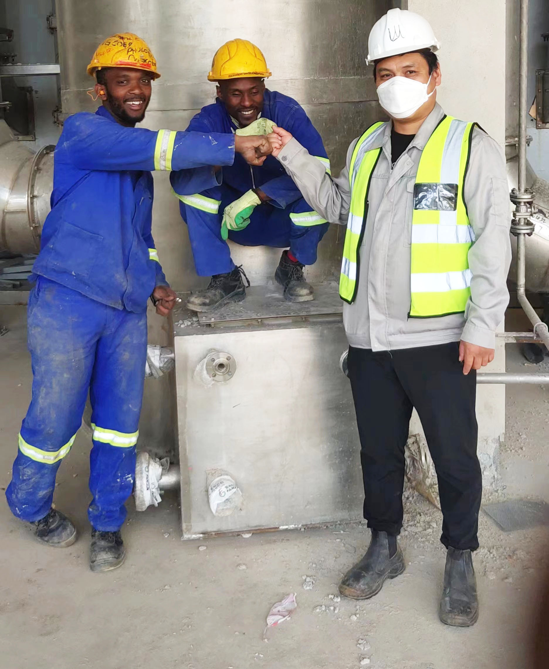南非德班某項目現場,一張中國面孔穿梭于土建車間?,F場還有很多在建設備,塵土漂浮在空中。他時不時地拿出手機,查看中國當地時間,因為他要與中國項目經理溝通一下項目進度和安裝細節。距離簽證到期沒有多少時間了,他想盡快把收尾工作做好。雖然能與一群非洲兄弟打成一片,但離家也有段時間了,他就是來自常州市范群干燥設備有限公司的售后人員——路工。