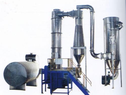 旋轉閃蒸干燥機是二十世紀八十年代在國外新推出的一種將干燥技術和流態化技術綜合為一體的新型干燥設備,它克服了噴霧干燥設備高,能源消耗大和流化床干燥不均勻的缺點,集兩者之所長。成為具有高效、節能、快速等特點的理想干燥設備。它特別適合于高黏度膏狀物、濾餅等物料的直接干燥,并可一次獲得顆粒微細的粉體,彌補了耙式干燥效率低、產量小的不足,改變了噴霧干燥先稀釋再進行噴霧處理的復雜過程。由于熱風與物料接觸時間短,可以對觸變性、熱敏性物料及生物菌體進行干燥,并具有防止焦化變色的作用。